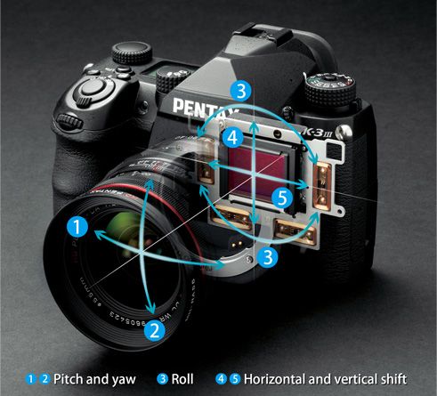 Sensor-shift shake reduction "SR II"(5-axis), Auto/Panning/Off |