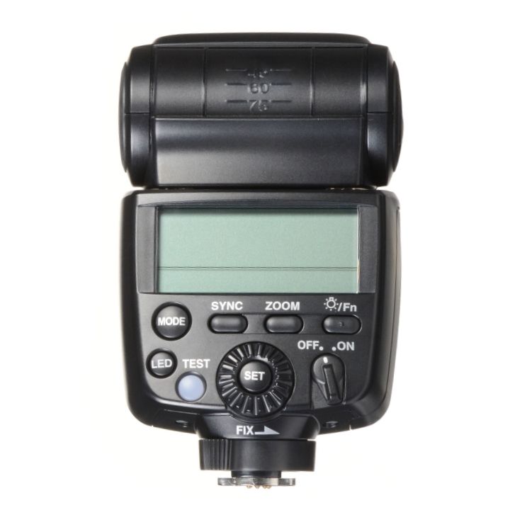 The AF360FGZ II has wireless master and slave TTL capabilities with access to 4 channels. It utilizes an optical pulse to transmit information and trigger flash units up to 13.1 away. Also, this unit can be set as a master, control, or slave unit and has access to a contrast control sync setting that enables the adjustment of the output of multiple flashes from a single unit. An added feature for this flash is a constant LED light with 5 output settings for use during video, as an AF assist light, or as simply another light for your subject. Other settings include a multi-flash mode for stroboscopic photography as well as slow, high-speed, first and second curtain sync. Additionally, the AF360FGZ II runs on 4 AA batteries with a recycle time of 2.3-17.7 seconds and it comes with a case and stand. Creative control modes include first-curtain sync, second-curtain sync, high-speed sync, and contrast control Rotates from 180° right to 135° left with a lock at 0° and click stops Tilts from +90° to -10° with stops at +90°, +75°, +60°, 45°, 30°, 0°, and -10° Recycle time: NiMH/1.5 sec - Alkaline & Lithium/2.5 sec Flash head automatically controls zoom from 24mm-85mm (full-frame) with compatible cameras and autofocus lenses Wide-angle panel pulls out of flash head to expand coverage to a 20mm angle of view in full-frame format Multi-flash mode for up to 100 flashes Effective range of 2.3-17.7' AF-assist beam for focusing under low light or low-contrast conditions Daylight balanced flash for use outside without the need for gels or filters Auto power off after 3 minutes of non-operation or after 1 hour while in wireless mode LCD panel is backlit for use in poor lighting conditions Runs on 4 alkaline, lithium, or Ni-MH AA batteries |