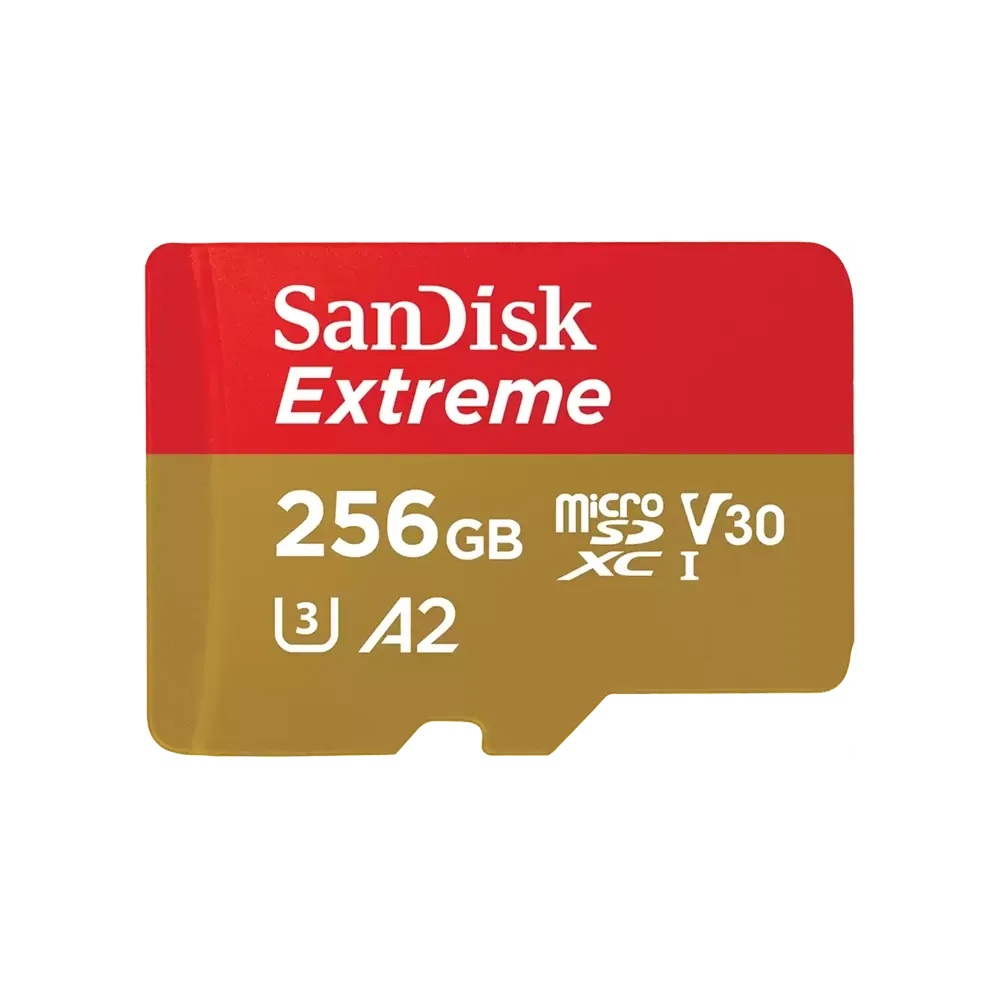 SanDisk Extreme microSDXC 256GB 190MB/s R 130MB/s W UHS-I U3 C10 V30 A2 Card