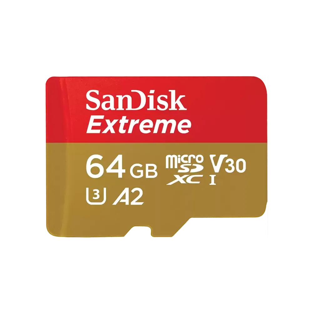 SanDisk Extreme microSDXC 64GB 170MB/s R 80MB/s W UHS-I U3 C10 V30 A2 Card