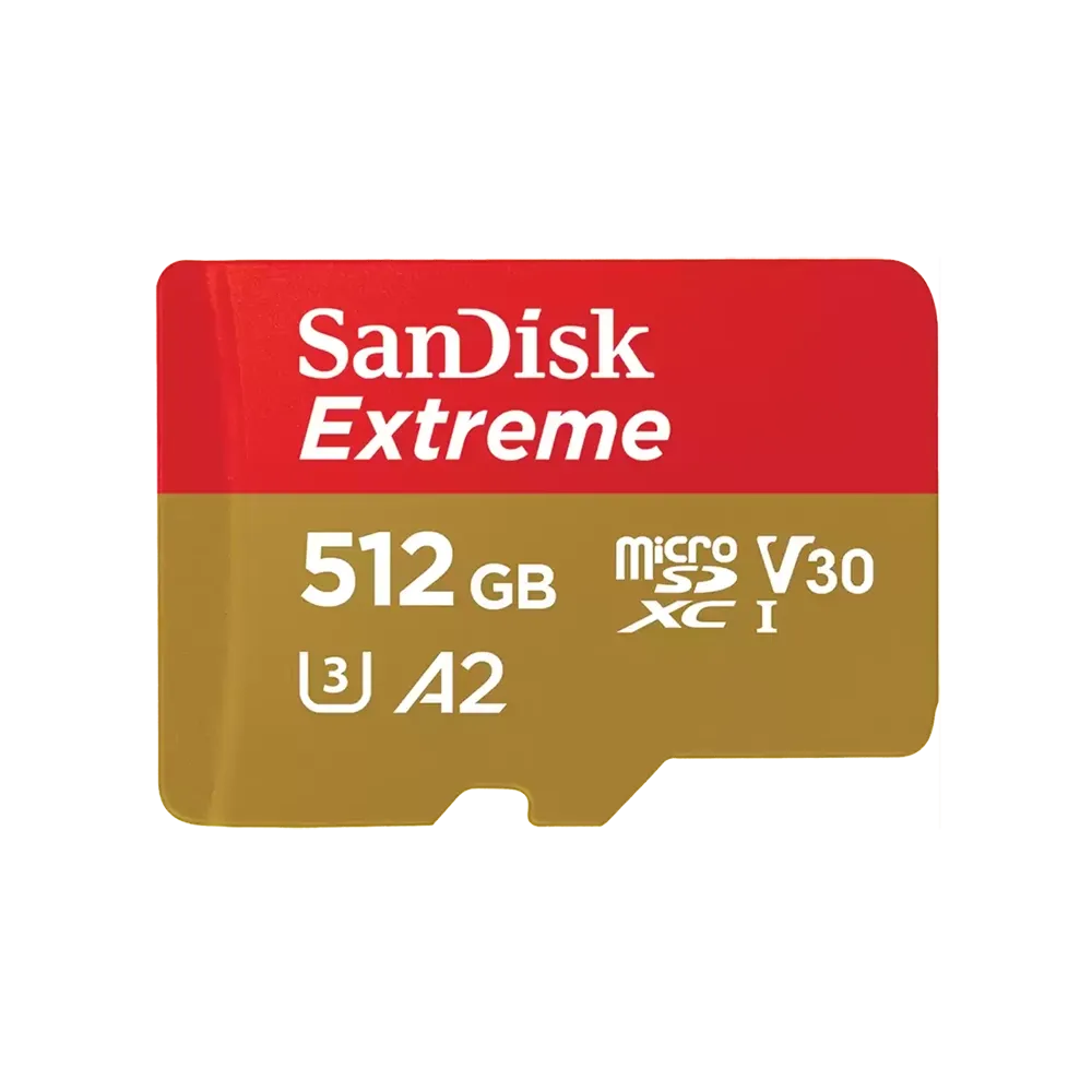 SanDisk Extreme microSDXC 512GB 190MB/s R 130MB/s W UHS-I U3 C10 V30 A2 Card